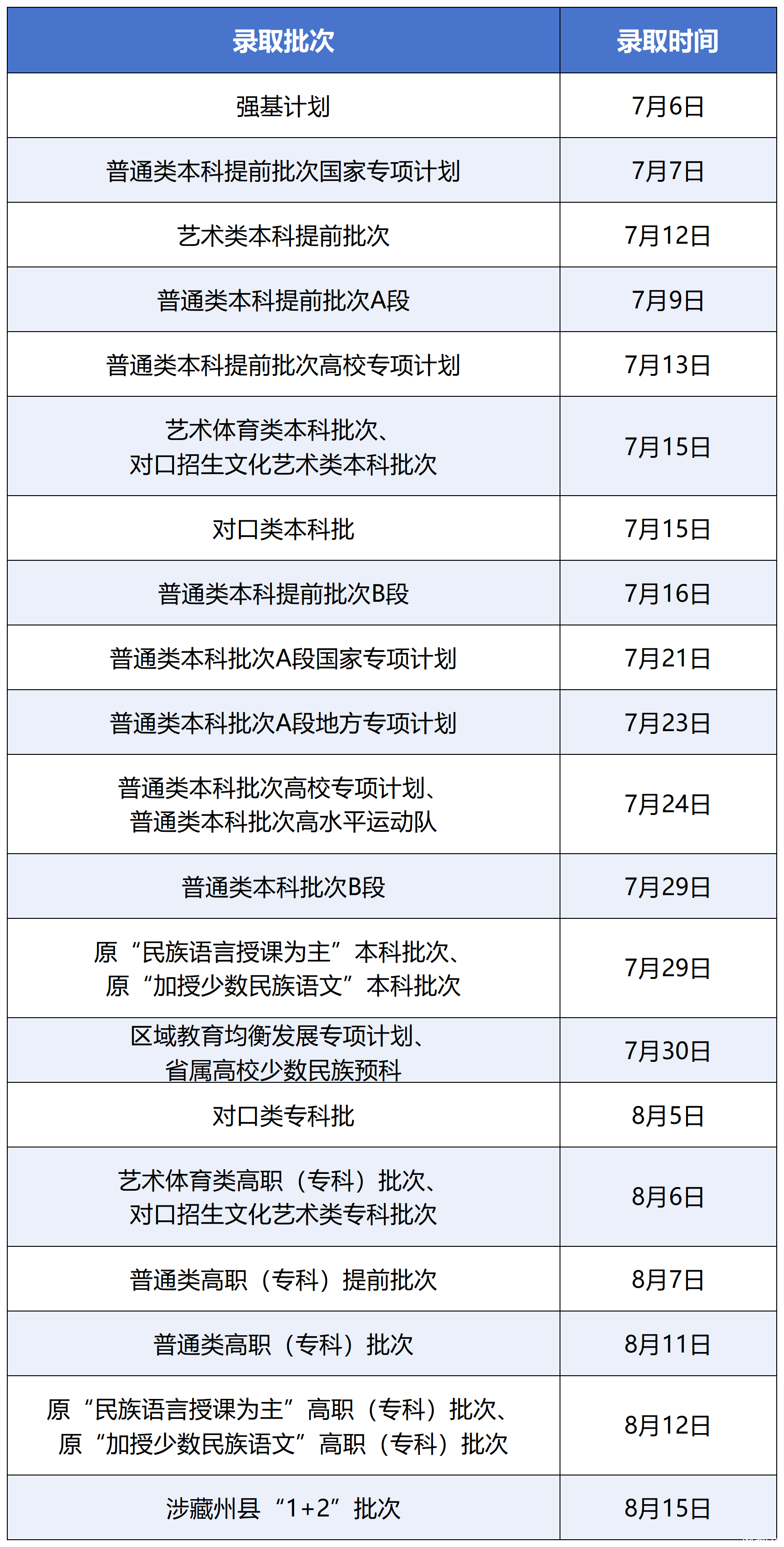 各批次预计录取时间